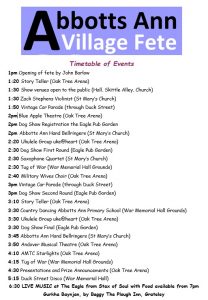 Introduction to the Abbotts Ann Village Fete Village Fete The village fete is usually on the 1st Saturday in September starting at 1pm, and is held either in the village centre or up at Bulbery playing field. This year the fete is on Saturday 6th September 2025, from 1pm, and will be held in the village …