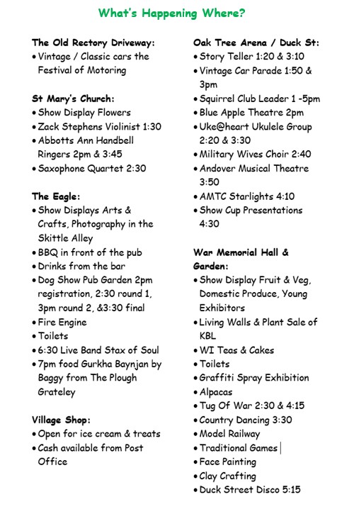 Village Fete The village fete is usually on the 1st Saturday in September starting at 1pm, and can be either in the village centre or up at Bulbery playing field. This year the fete is on Saturday 2nd September 2023, from 1pm, and will be in the Village Centre. Village Fete Committee: The Village Fete …